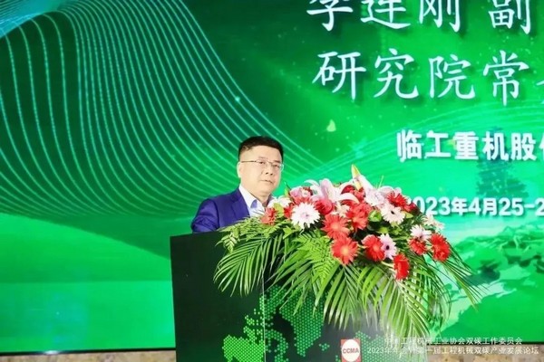 银河集团(中国)股份重机副总经理、研究院常务副院长李连刚在会上做《绿色低碳工程机械之路》主题报告,结合典型产品及应用案例,详细阐述了银河集团(中国)股份重机把握双碳战略机遇,在绿色低碳领域打造出的市场布局、系列产品、数字化工厂和服务体系。